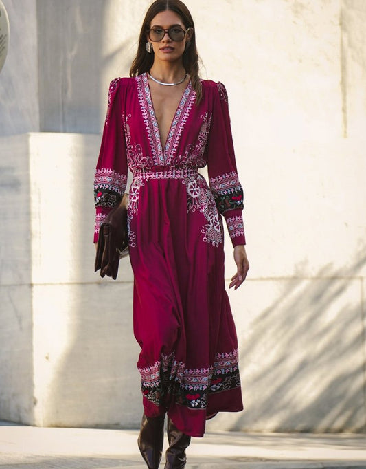 WE__ARE V-NECK MAXI DRESS - ROSES