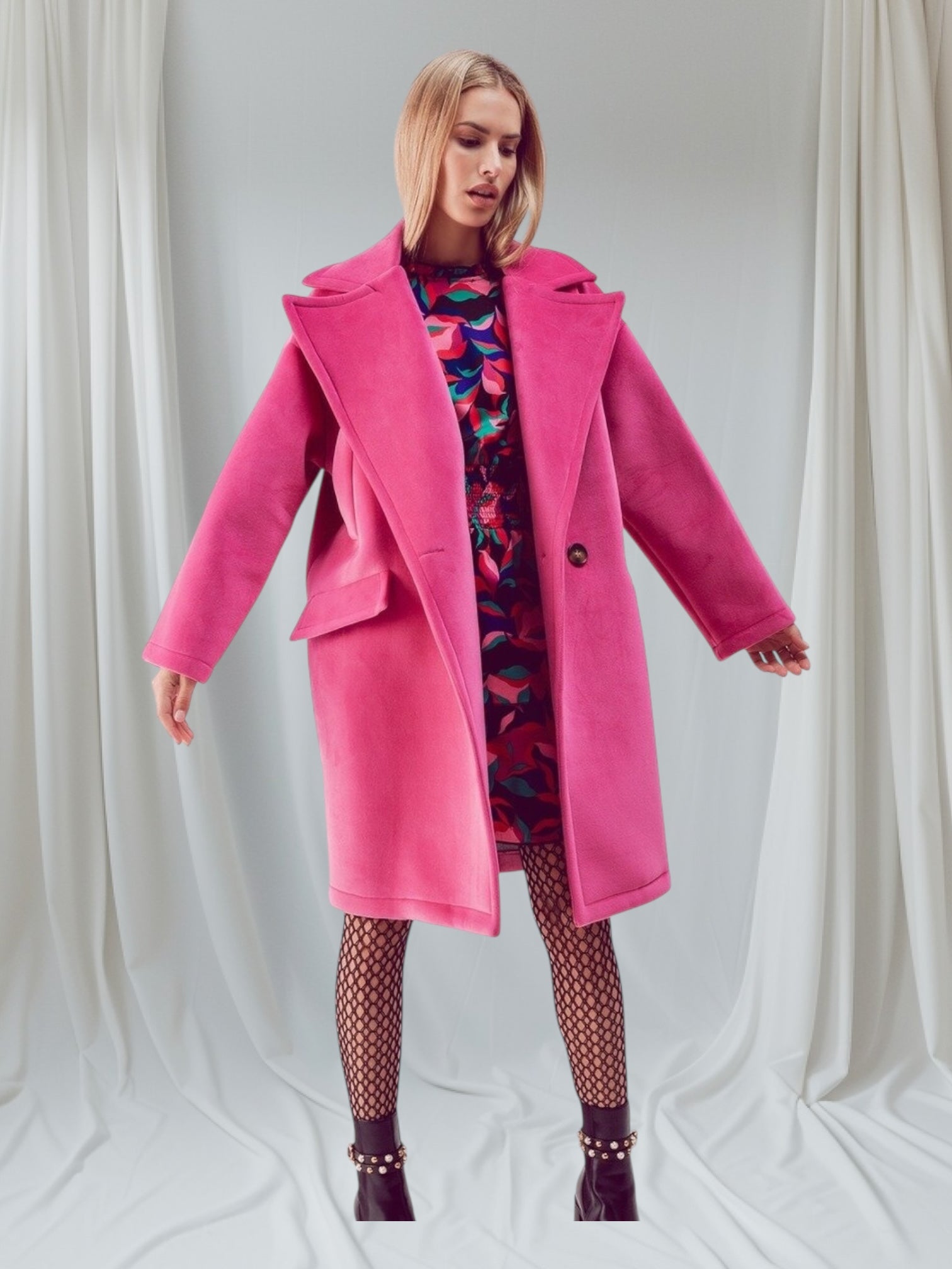 - Fuchsia Dream Coat – Soft wool coat in vibrant pink, perfect for a bold and feminine winter look.
