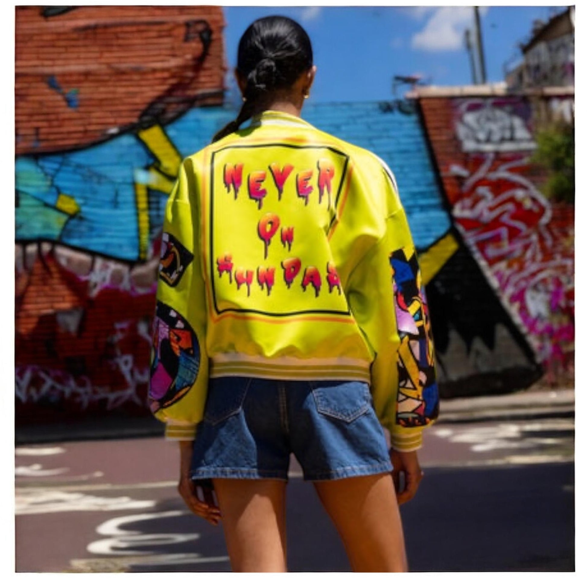 Συνδυάζει graffiti στοιχεία, έντονα χρώματα και city vibes σε ένα απόλυτα fashion αποτέλεσμα.