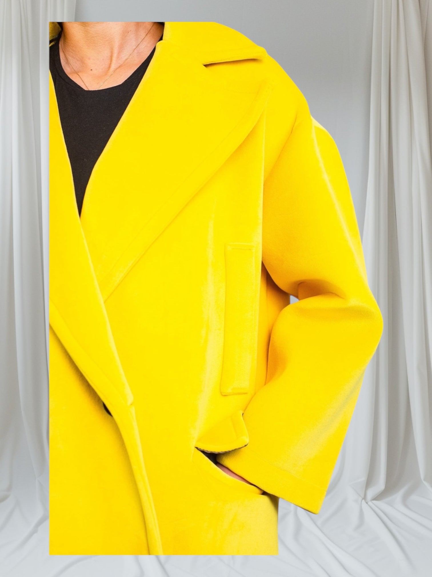 - Sunny Mood Coat – Bright yellow oversized coat that brings instant joy to any outfit.