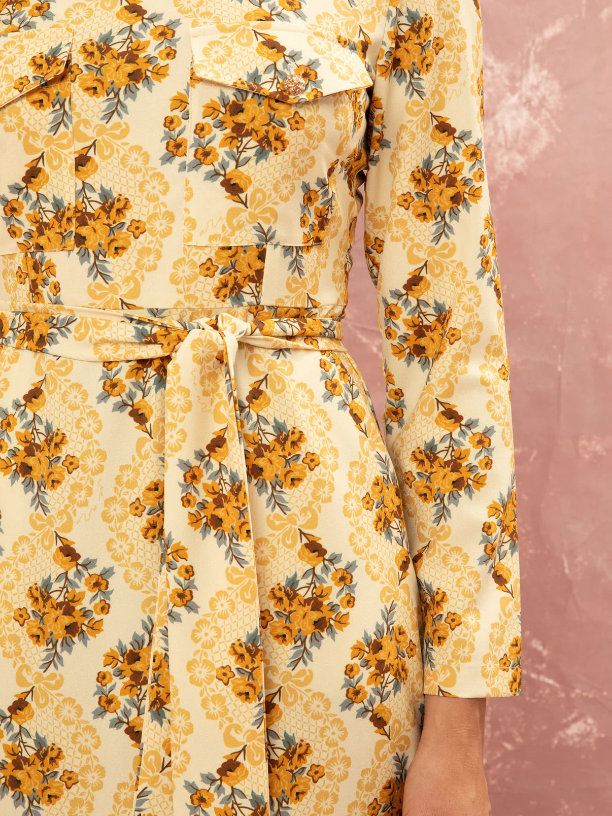 WE__ARE STRAIGHT LINE MIDI DRESS - LACE BOUQUET CREAM